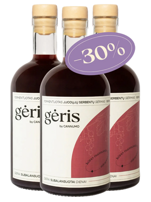 GĖRIS nėra tas pats, kas kombucha. Kombuchos esminis komponentas yra grybas, o GĖRIO sudėtyje jokio grybo tikrai nerasime - tai natūralus fermentuotų uogų (arba salyklo) gėrimas, kuriame yra net 96 skirtingos bakterijų rūšys. Kombucha dažniausiai vartojama kaip limonado alternatyva, o GĖRIS vartojamas gerokai mažesniais kiekiais, matuojamas šaukštais, gurkšniais ar shot’ukais ir yra labai populiarus tarp sveikai besimaitinančių ir savo sveikata besirūpinančių žmonių.